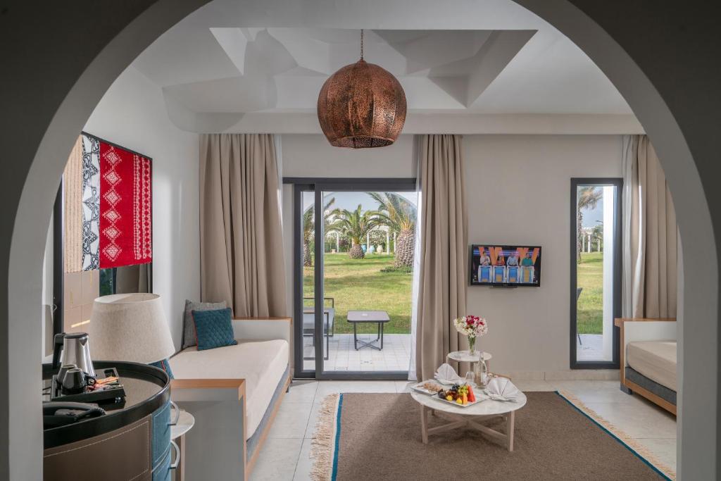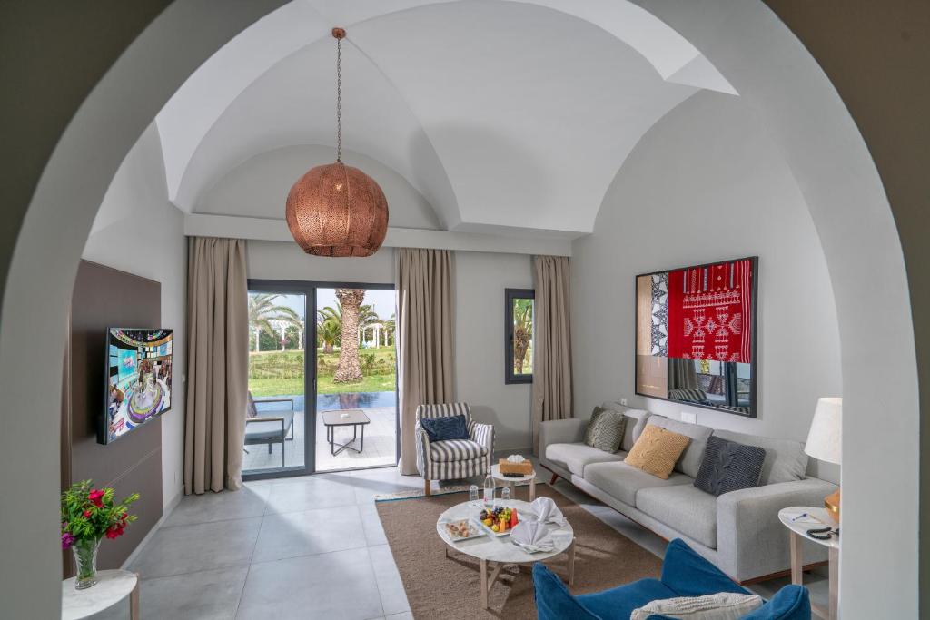 Oaspeții se pot bucura de 4 piscine exterioare, inclusiv o piscină infinity cu vedere panoramică spre Marea Mediterană. Resortul dispune de centru spa cu hammam tradițional tunisian, 6 restaurante cu specific internațional și local, precum și multiple baruri elegante.