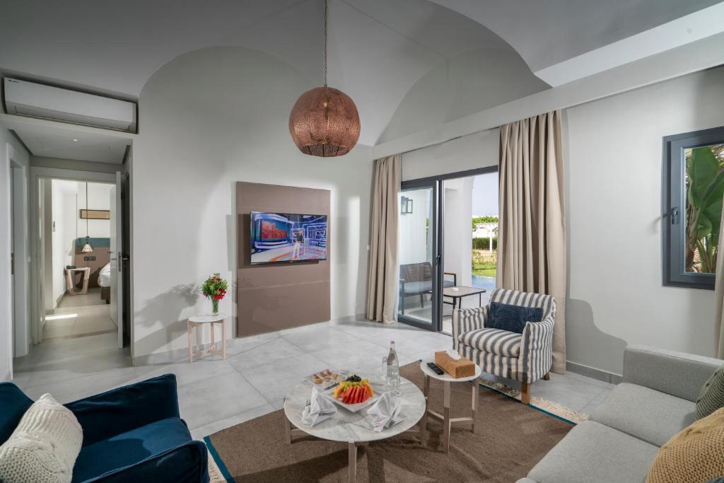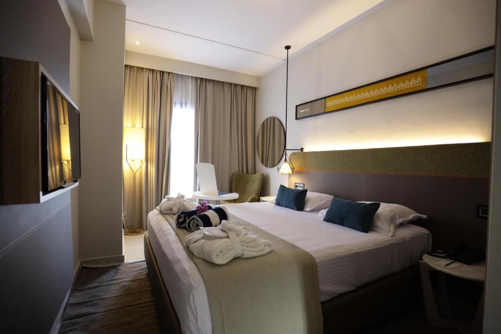 Camerele spațioase sunt decorate in nuanțe calde, mediteraneene și oferă balcoane sau terase cu vedere spre mare sau grădini. Pentru cei activi, resortul pune la dispoziție terenuri de tenis, facilități pentru sporturi nautice și un centru de fitness modern. Programele de animație și clubul pentru copii completează perfect experiența de vacanță all-inclusive.