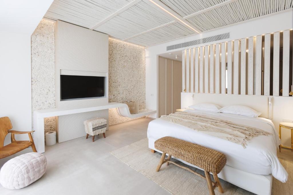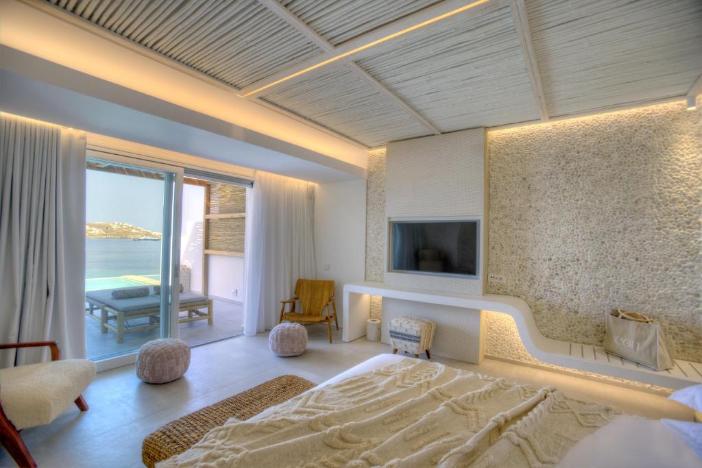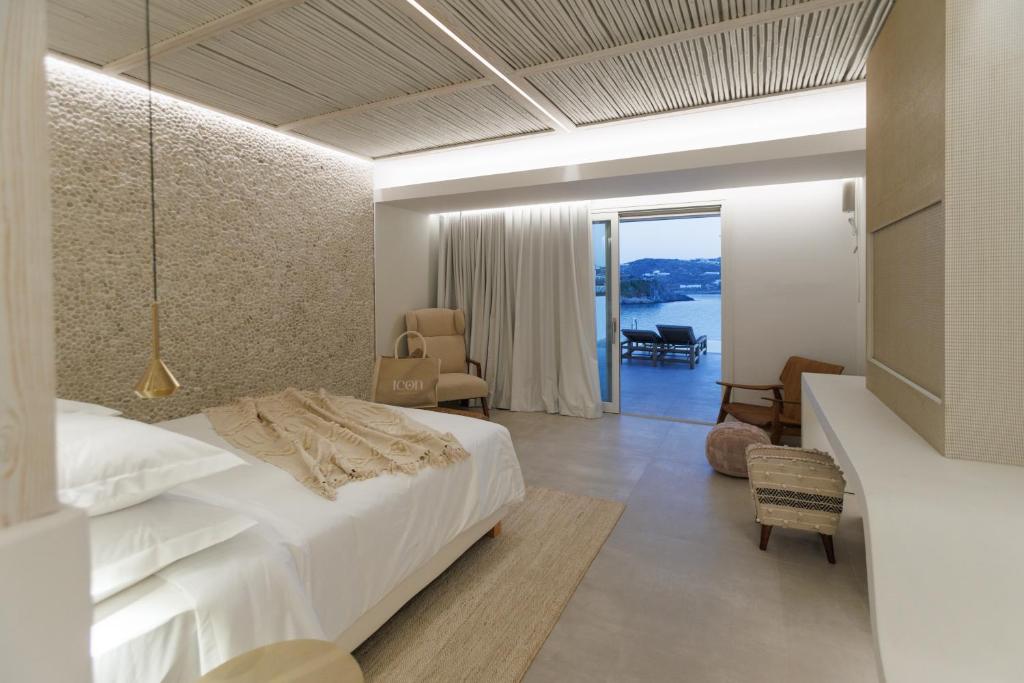 Acest hotel pune la dispoziție camere care includ aer condiționat, un birou, o cafetieră, un frigider, o cutie de valori, un televizor cu ecran plat, un balcon și o baie proprie cu duș. Baia proprie oferă articole de toaletă gratuite. La Icon Mykonos, camerele oferă lenjerie de pat și prosoape.
