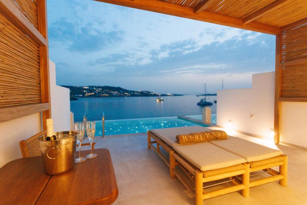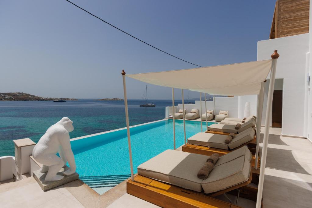 Icon Mykonos se află pe malul mării in Megali Ammos și oferă cazare de 4 stele, o piscină in aer liber sezonieră, o terasă și un bar. Situată in cartierul Mykonos City Centre, proprietatea pune la dispoziția oaspeților un restaurant. Proprietatea are o recepție deschisă non-stop, servicii de transport de la/la aeroport, depozit de bagaje și WiFi gratuit in intreaga proprietate.