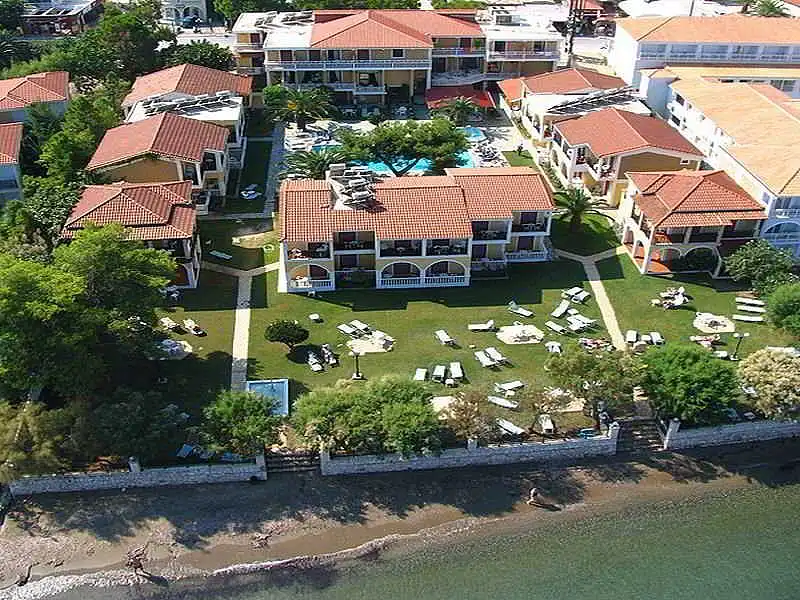 The hotel is located in an ideal position, just 4 km from the town and 8 km from Vasilikos, where the most popular beaches in Zakynthos can be found. In the area guests will also find supermarkets, restaurants, bars, nightclubs, jewellery shops, gift shops and anything else guests may need during their stay. Zakynthos International Airport is about 35 km away.||The hotel is the epitome of a seaside hotel, built literally by the waves on the beach at Argassi, one of the most popular tourist resorts on the island. Guests will experience a family environment and great hospitality throughout their stay. There are 80 rooms in total at this air-conditioned beach hotel. Guests are welcomed in the lobby with 24-hour reception and check-out services, a hotel safe, and currency exchange. The establishment includes facilities and services such as a café, bar and pub. A childrens playground, wireless Internet access, bicycle hire and a private car park are also available.||The comfortable guest rooms have an en suite bathroom with a shower, bathtub and hairdryer, balcony, two music channels, a radio, telephone, television, fridge and safety deposit box (for an extra fee). Air conditioning and heating are also offered.||Guests can take a refreshing dip in a choice of pools. There is also a sun terrace and guests can treat themselves to a soothing massage. Sun loungers with parasols are laid out ready for use on the nearby sandy/pebble/rocky beach.||A continental breakfast buffet is served each morning.