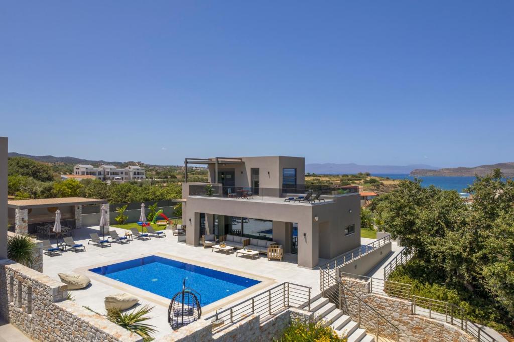 Imperium Luxury Villas-Sauna, Jacuzzi, Heated Pool & Gym-Chania se află in Kato Galatas și oferă vedere la munte, o piscină in aer liber, un centru de fitness, o grădină, o terasă și un bar. Proprietatea beneficiază de aer condiționat și are o piscină privată, o cadă cu hidromasaj și o cadă spa.