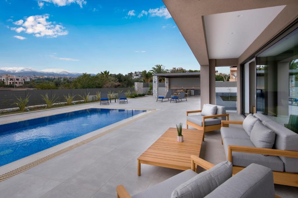 Imperium Luxury Villas-Sauna, Jacuzzi, Heated Pool & Gym-Chania se află la 9 minute de mers pe jos de Plaja Kalamaki și la 3,5 km de Grădina Municipală. Aeroportul Internațional Chania se află la 20 km.