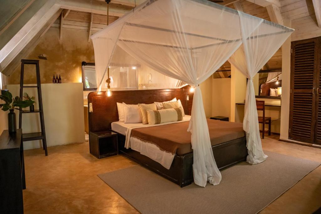 Kusini Property (Bahani, Jambiani): Două apartamente cu 1 dormitor cu vedere laterală la ocean și două vile cu 3 dormitoare, perfecte pentru grupuri mai mari sau familii, fiecare găzduind pană la 7 oaspeți.
