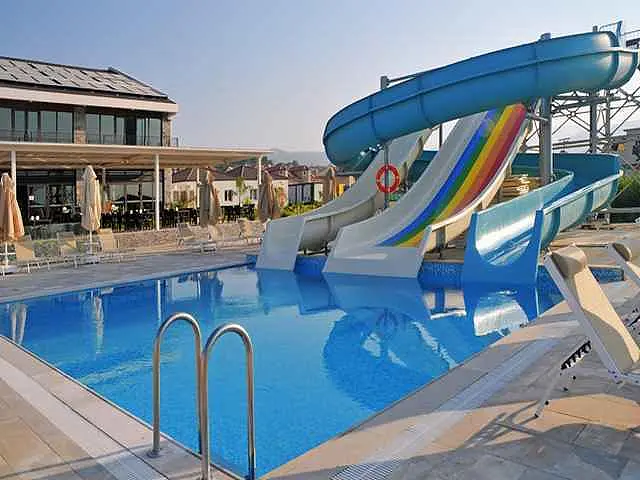 Situată într-o zonă de 35.000 mp, proprietatea are un lac natural alături de 5 piscine, oferind activități, facilități de relaxare și tobogane. Facilităţile de spa includ baie turcească, saună, sală de fitness şi servicii de masaj.