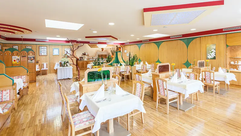"Dream and enjoy under the stars of Joglland" Located in the heart of Joglland, in the middle of the village of Wenigzell, our traditionally run hotel invites you to a relaxing holiday. We have been running the hotel with love for the third generation and always strive to pamper you in every way. The idyllic natural setting offers the perfect conditions for a break - combined with our regional, homemade specialties, we make your stay a special experience. Enjoy pure wellness with us in the Joglland Oasis and spend pleasant holidays in a quiet location in the heart of Joglland. Styrian dishes from the kitchen and cellar as well as homemade pastries and delicious ice cream creations from our own production provide you with unique culinary experiences. Pets Please only bring your animals with you on your vacation if you have booked in advance. In the interest of all guests, only a limited number of dogs can be accepted. Please let us know when making your inquiry or booking whether you would like to bring your four-legged friend with you! The surcharge without food per night is € 15.00. Dogs are not allowed in the wellness area, the sunbathing garden and the general dining room. Final cleaning for dogs: If the dog is heavily soiled, we charge €50. If we find that your dog is sleeping in the bed, an additional final cleaning fee of €50 will be charged. facility / Ambiance: comfortable, modern target audience: couples, motorcycle travellers, nature lovers, senior citizens, shorttrip travellers, wellness travellers, mountainbiker / bicycle travellers, cultural travellers, food lovers