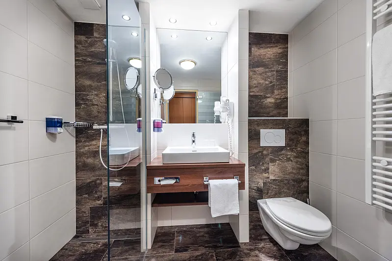 bath room: toilet, hair dryer, shower, bath robe - free of charge