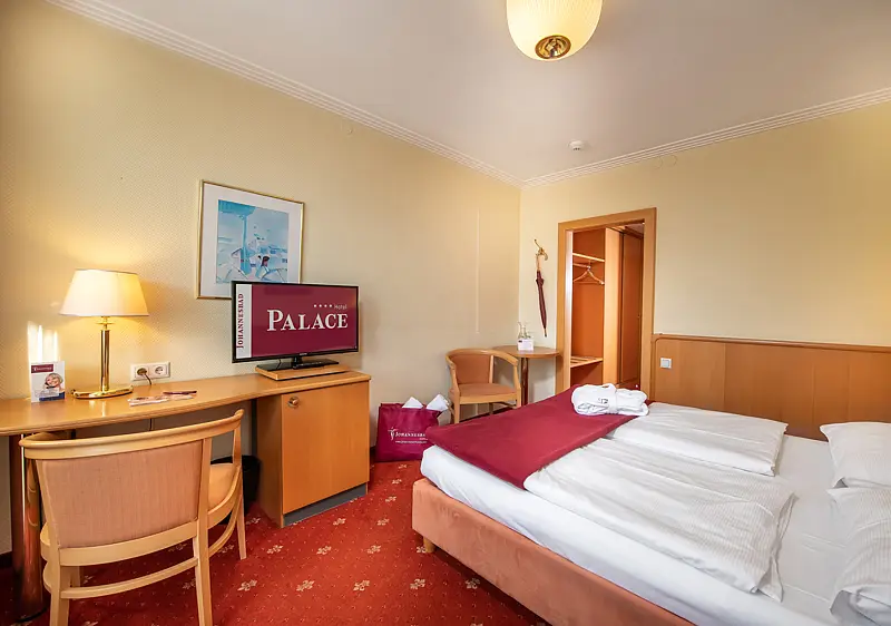 At the 4 star “Johannesbad Hotel Palace” Bad Hofgastein we are happy to ensure wonderful holiday moments. Wellness and nature, sport and relaxation, pleasure and health, all of this is close together for us. With our personal flair, your vacation in our 4 star hotel in the Salzburger Land will be an unforgettable experience. The B double room 18m² is equipped with a Grand Lit bed 160 x 200 + shower. The D single room 18m² (SI02) is equipped with a Grand Lit bed 140 x 200. The single room 12m² (SI01) is equipped with a bed 90 x 200. Panorama lounge (winter garden): a representative retreat where you can enjoy the wonderful mountain panorama even on cooler days. Barrier-free access to the vitality oasis with panoramic indoor pool Live music in the hotel bar several times a week The ski equipment can be easily reserved online: https://www.gastein-sport.at/skiverleihpalace/ or at +43 (0)664 9111254, zrnjevic@gastein-sport.at facility / Ambiance: comfortable target audience: sport & active travellers, group travellers, business travellers, couples, nature lovers, shorttrip travellers, singles, wellness travellers, families, golf club travellers, long term tourists