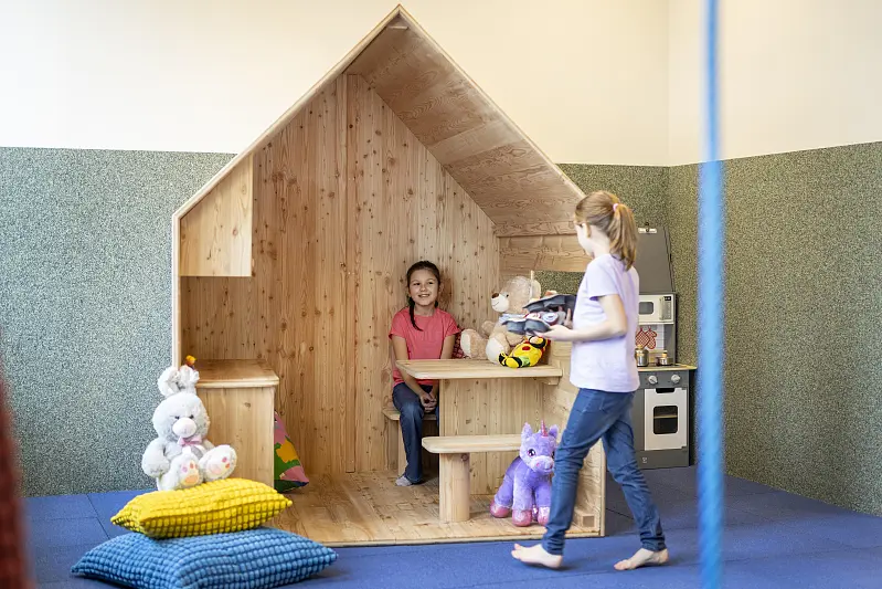 cot - on request, children's playground, children's playroom, baby phone, games rental, high chair