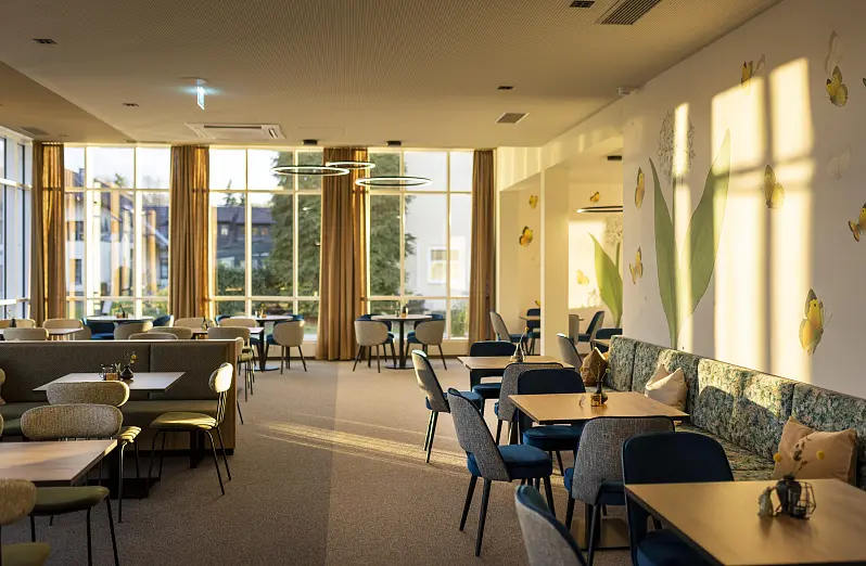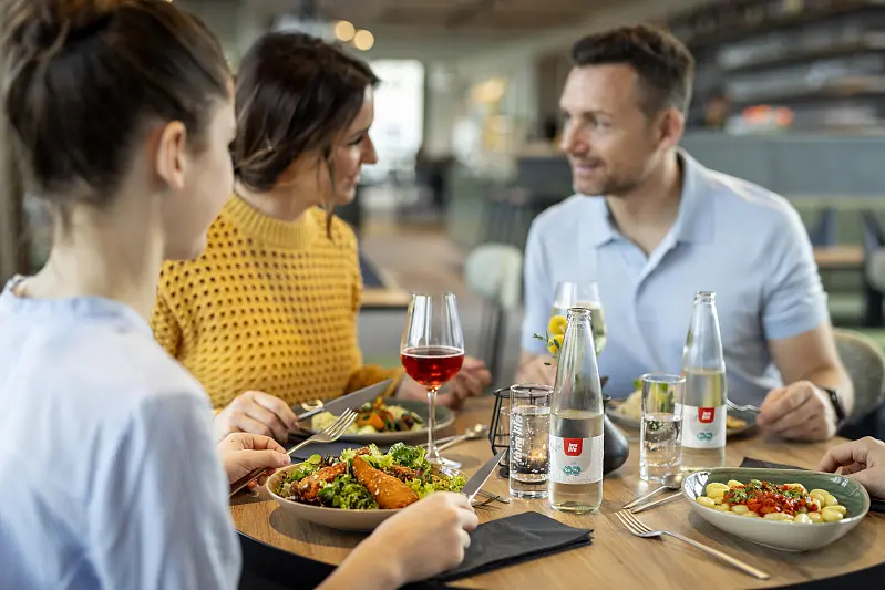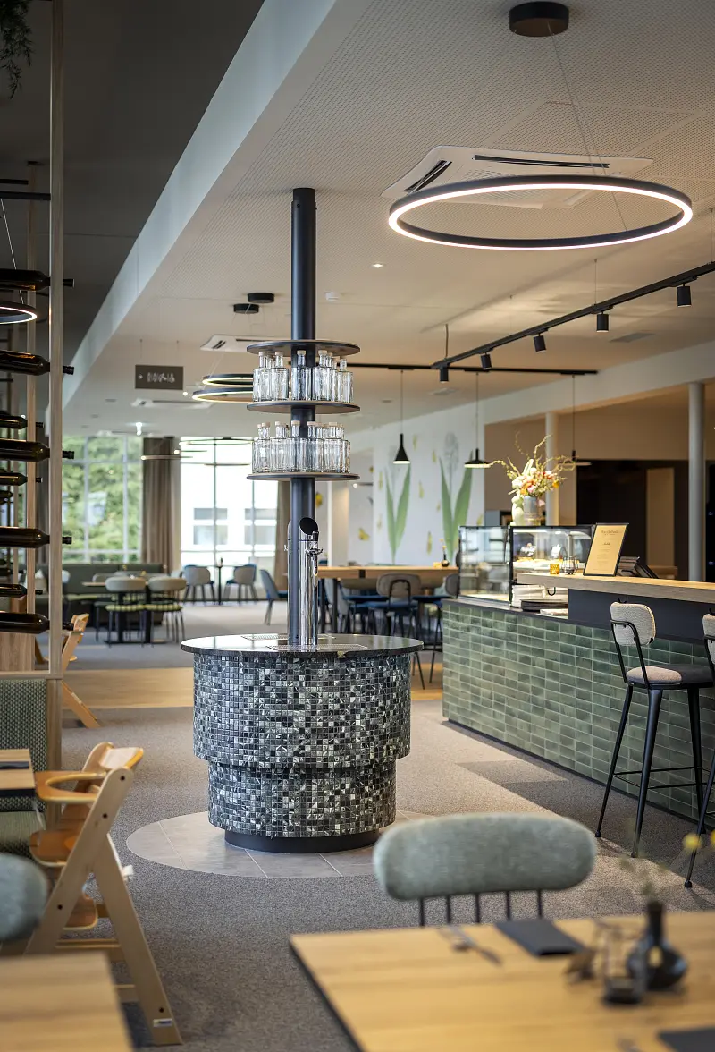 The house tells its very own story, which begins with the origins of Bad Radkersburg as a thermal spa town and is now being reinterpreted and revitalized. What was once the spa center is becoming a lively meeting place in the spa park, right next to the old town. The Wandelhalle, which impresses with its clear architectural form, becomes a cozy restaurant and café with a wine lounge. It goes without saying that in addition to regional delicacies such as Styrian tapas, you will also be served "classics". Of course "from here" and as a special offer with the mineral water from the original spring, which is located directly in the building and to which the town owes the addition "Bad".