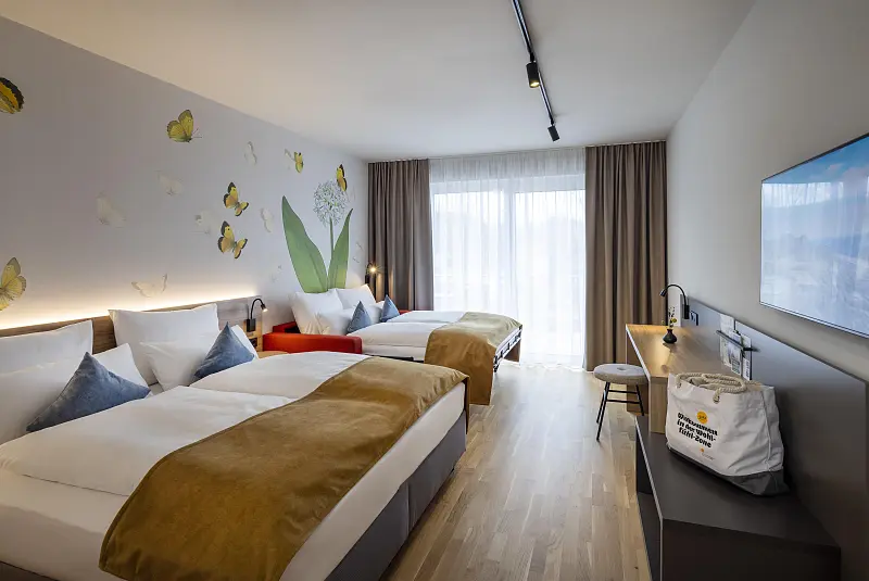 The new JUFA Hotel in 4-star comfort in the heart of Bad Radkersburg impresses with its absolutely prime location in the border triangle of Austria, Slovenia and Hungary. Hotel guests also enjoy included bathing fun in the versatile Parktherme Bad Radkersburg, which has been awarded several times as Austria's thermal spa of the year! While some explore the adventure thermal spa, others experience the relaxing effect of the thermal water, an extensive sauna village and the vitality studio with spa & massages! The picturesque old town invites you to stroll, shop and enjoy. The house tells its very own story, which begins with the origins of Bad Radkersburg as a thermal spa town and is now being reinterpreted and revitalized. What was once the spa center is becoming a lively meeting place in the spa park, right next to the old town. The Wandelhalle, which impresses with its clear architectural form, becomes a cozy restaurant and café with a wine lounge. It goes without saying that in addition to regional delicacies such as Styrian tapas, you will also be served "classics". Of course "from here" and as a special offer with the mineral water from the original spring, which is located directly in the building and to which the town owes the addition "Bad". Water is simply part of the town and the new JUFA Hotel. Also due to the proximity to the Mur, which forms the border between Styria and Slovenia, spanned by a bridge, and is part of the unique UNESCO biosphere reserve "Amazon of Europe". For some, the adventure on the Mur may already begin at the source. Because one of the most beautiful cycle paths in Austria - the Mur cycle path - leads from the Salzburg Lungau to Croatia. Definitely to Bad Radkersburg, the town that knows what cyclists need. The JUFA Hotel is also equipped as a bed & bike business. In addition to safe parking spaces for the bikes, there are refreshing drinks for the throat, comfortable beds to rest in and hosts who always have a good tip for the next trip in the region. facility / Ambiance: comfortable, family friendly, modern, suitable for children, suitable for wheelchairs target audience: sport & active travellers, group travellers, backpackers, business travellers, couples, motorcycle travellers, nature lovers, senior citizens, shorttrip travellers, singles, wellness travellers, young travellers, dog lovers, families, homosexual, long term tourists, singles with kids
