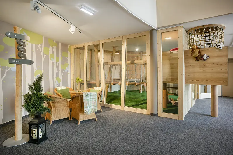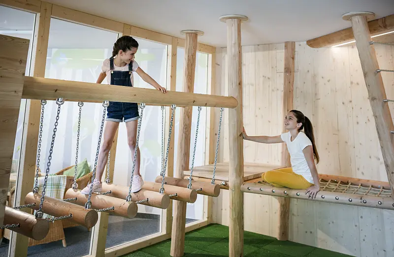 At the JUFA Hotel Mariazell*** the kids get their money's worth - running around in the 2-story games room with climbing options.