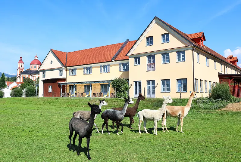 Our organic country adventure village in the Pöllauer Tal Nature Park, part of the Thermenland & Styria, not only offers woolly, fluffy alpacas as neighbors and is located in the "Garden of Austria", but also scores points with great children's play areas indoors and outdoors! While the children play and romp, tired parents can relax in our hotel's sauna and enjoy time for themselves. Our invigorating Grander water noticeably contributes to refreshing body and mind. Discover our cuddly alpacas and experience unforgettable moments with these good-natured animals. With real campfire romance, you can enjoy our organically certified dishes and experience the perfect end to the day under the clear starry sky. In our children's house you will find a large selection of toddler items, from buggy rentals and a changing station to baby monitors and high chairs - so that your family vacation is a complete success. An absolute highlight is the included GenussCard, which offers you free entry or discounts to over 200 excursion destinations. facility / Ambiance: comfortable, family friendly target audience: sport & active travellers, low budget travellers, couples, motorcycle travellers, nature lovers, senior citizens, shorttrip travellers, young travellers, dog lovers, families, homosexual, long term tourists, singles with kids
