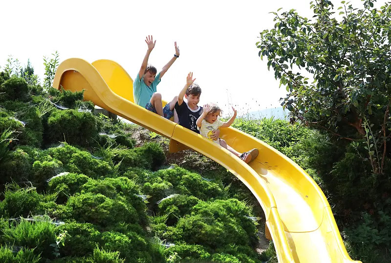 Our organic country adventure village in the Pöllauer Tal Nature Park, part of the Thermenland & Styria, not only offers woolly, fluffy alpacas as neighbors and is located in the "Garden of Austria", but also scores points with great children's play areas indoors and outdoors!