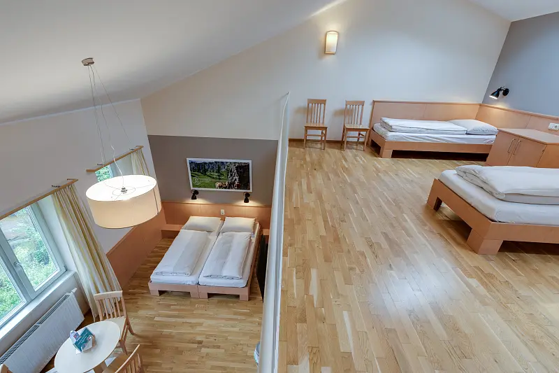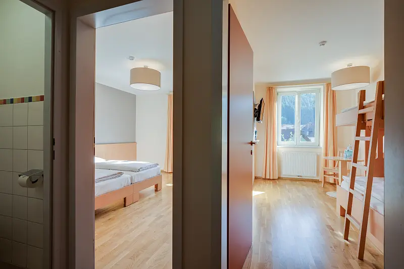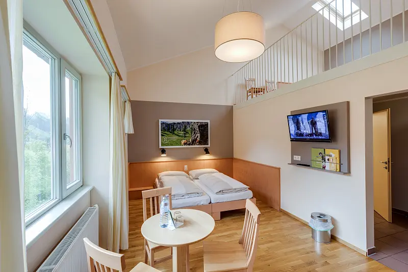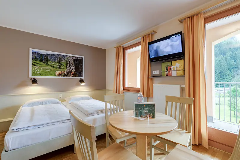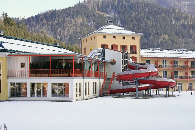 The "JUFA Hotel Veitsch"***, perfectly located for families in the hiking paradise of Hohe Veitsch, offers a new indoor pool with slide as well as incomparable nature experiences! The child-friendly hotel is located in the Alps and close to Vienna, ideal for summer hikes in a popular region for all age groups. Our wellness area with a spacious sauna area and indoor pool invites you to take relaxing breaks. The sun terrace of the café is a popular meeting place for young and old. Sports enthusiasts enjoy the fun court as well as beach volleyball, tennis and football pitches for exciting matches. A family holiday in Upper Styria promises unforgettable experiences: discover family-friendly hiking and cycling trails along the Mürz and Mur or enjoy a relaxing trip to the Green Lake. The adventure outdoor pool in Mitterdorf offers our hotel guests well-deserved rest and relaxation free of charge. facility / Ambiance: family friendly, modern, suitable for children, suitable for wheelchairs target audience: sport & active travellers, group travellers, low budget travellers, couples, motorcycle travellers, nature lovers, senior citizens, shorttrip travellers, singles, young travellers, dog lovers, families, singles with kids