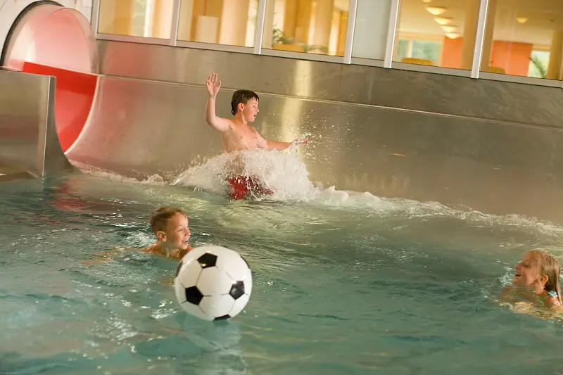 Our wellness area with a spacious sauna area and indoor pool invites you to take relaxing breaks. The sun terrace of the café is a popular meeting place for young and old. Sports enthusiasts enjoy the fun court as well as beach volleyball, tennis and football pitches for exciting matches.