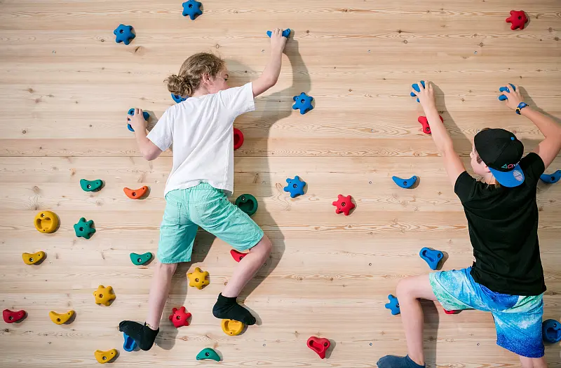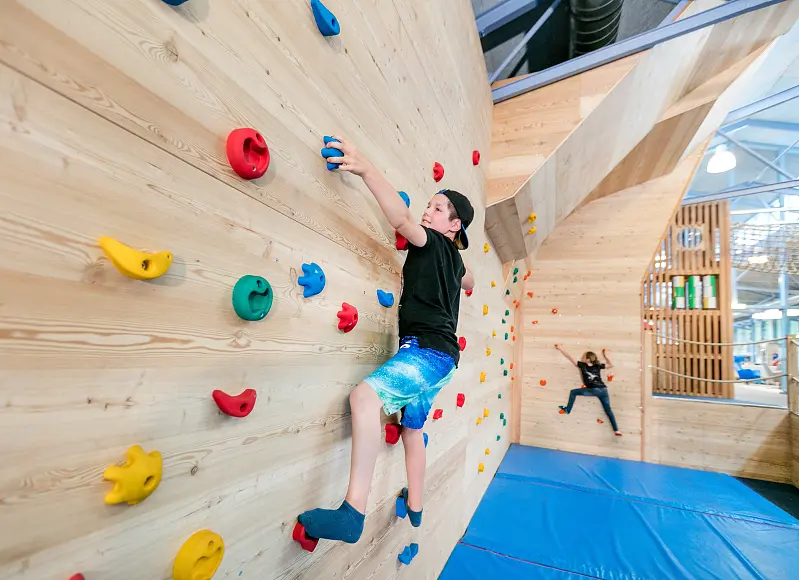 A highlight for the little ones: Styria's most versatile wooden indoor playground - with 2 climbing towers, slide, table tennis and various slot machines! To end the day in a relaxed and sociable way, there is table football, mini golf, table tennis, billiards and a bouldering wall for climbing.