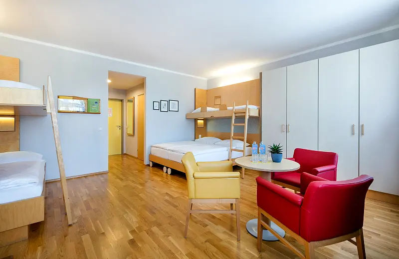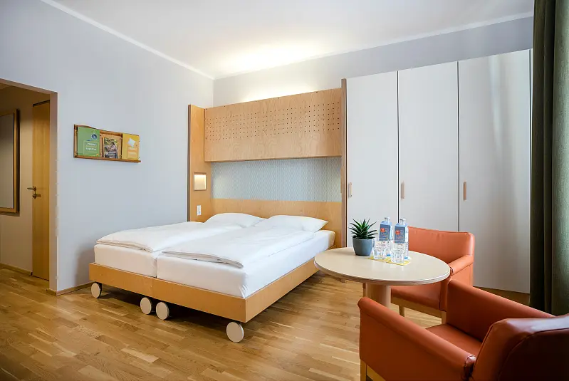 The Thayatal National Park stretches along the Thaya, a true hiking paradise in the northwest of Lower Austria. The family-friendly "JUFA Hotel Waldviertel"***s is located directly on the idyllic banks of the river and is directly connected to the cycle path. Nature lovers appreciate the unique charm of the Waldviertel with its rolling hills and green meadows. The "JUFA Hotel Waldviertel"***s is equipped with regional natural materials, its own sauna area and a spacious park that promises maximum relaxation in the midst of intact nature. A football field and several bowling alleys are available for daily workouts or sports competitions. In bad weather, a sports hall offers alternatives. Table tennis and billiards tables ensure hours of entertainment, while the "Kraxl Platzl" playground offers plenty of fun and action for children. In the Café Woidviertl, our guests can comfortably enjoy regional delicacies. There are new wooden playhouses right in the café, which also keep the little ones entertained. Hiking, swimming, cycling or leisurely strolls along the Thaya – sports enthusiasts and families can expect Austria's most extensive hiking and cycling network in the Waldviertel with 90 routes covering a total of 2,000 km. facility / Ambiance: family friendly target audience: sport & active travellers, low budget travellers, young travellers, families