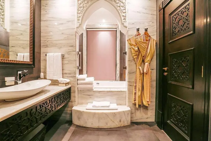 dining amid the opulence of cool marble, glided columns and glittering