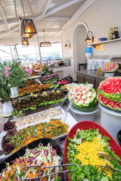 Camerele luminoase și confortabile sunt dotate cu aer condiționat, TV prin satelit și balcon, multe dintre ele oferind priveliști spectaculoase spre mare. Restaurantul principal servește preparate din bucătăria turcească și internațională, iar barul de la piscină este locul ideal pentru răcoritoare și cocktailuri.