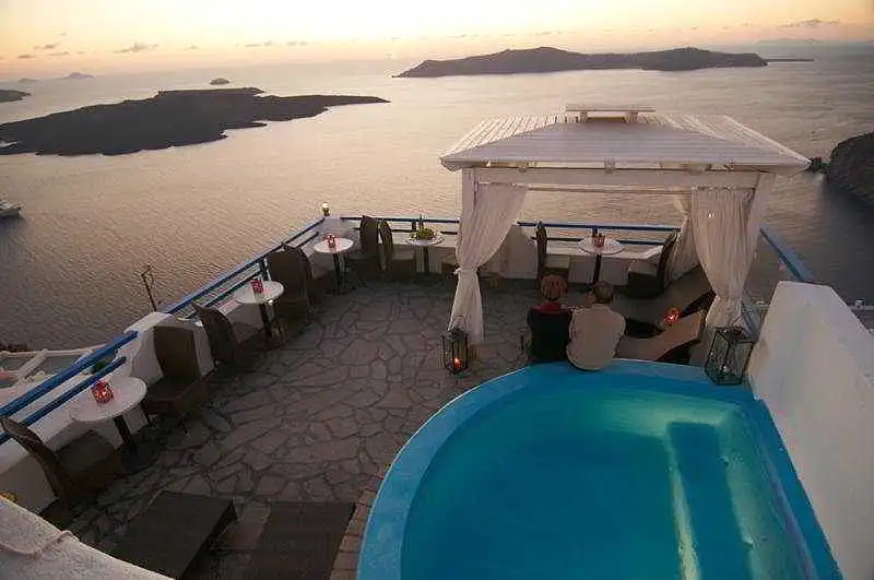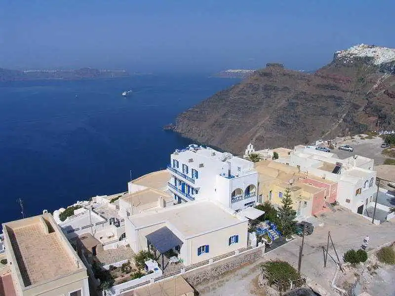 The hotel, located in Firas cliff edge, is housed in a traditional Cycladic building and offers fantastic sea views overlooking the caldera and the legendary volcano. The centre can be reached within walking distance; here guests will find a variety of shops, taverns and restaurants, suitable to all tastes. Kamari is approximately 9 km from the aparthotel.