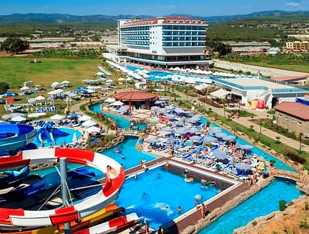 Hotelul pune la dispozitia oaspetilor sai facilitati si servicii precum restaurant, restaurante a-la-carte, centru fitness, 2 piscine exterioare, 5 tobogane, piscina pentru copii, 6 baruri, pub, patiserie, discoteca, mini-club, centru Spa.