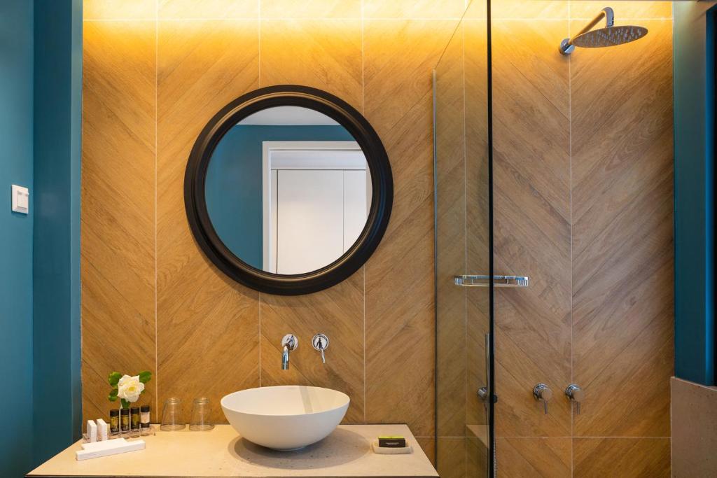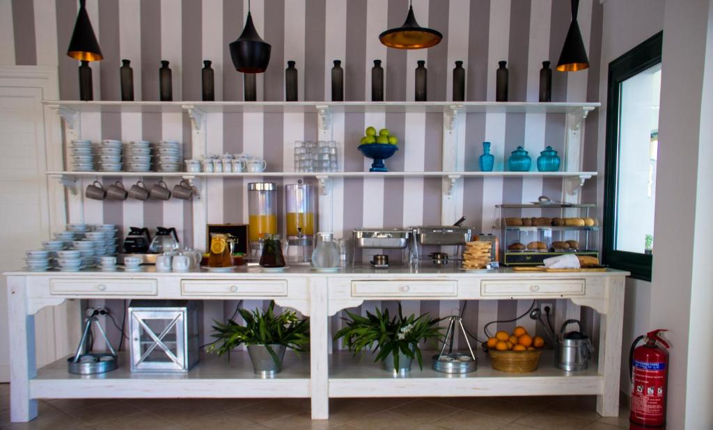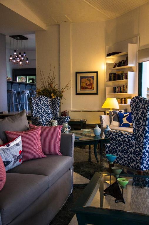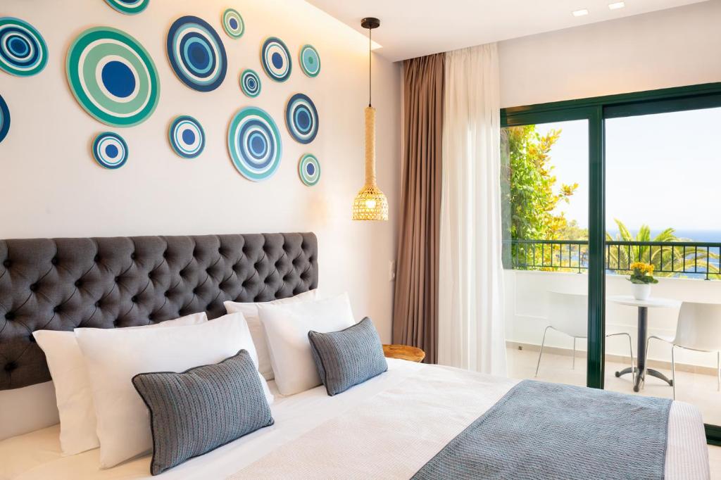 Cu balcon mobilat, cu vedere la mare sau la grădină, fiecare cameră de la Kalidon Panorama este echipată cu aer condiționat, TV cu canale muzicale prin satelit, minibar și seif și oferă un serviciu zilnic de menajeră. Băile sunt dotate cu uscător de păr.