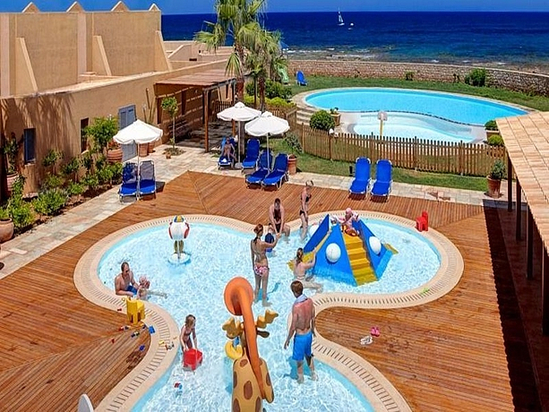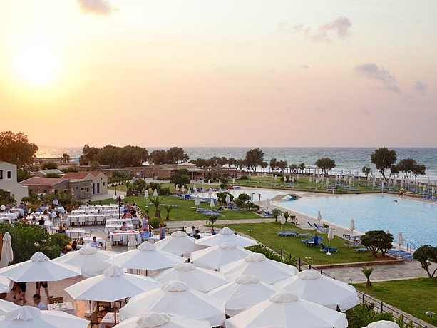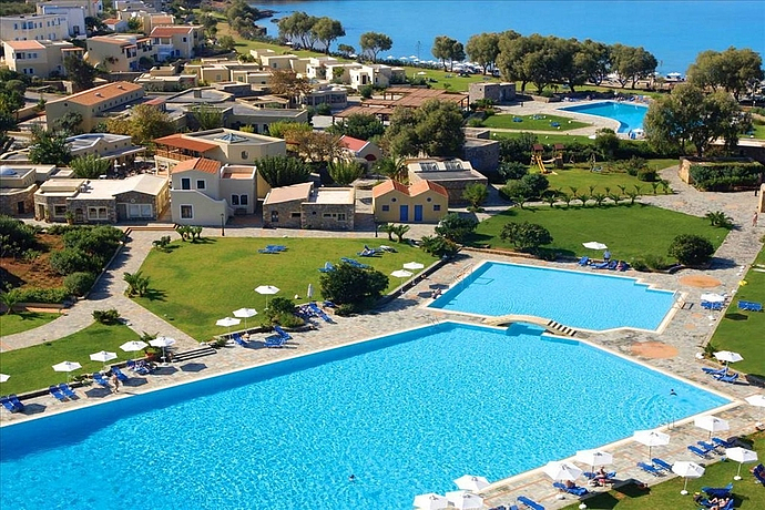 HOTEL: Este hotel cuenta con hall con recepción, sillas, sofás, zonas donde sentarse, un bar, un salón donde podrá ver la televisión, una sala de juegos y restaurantes. Además tiene salas para conferencias e internet. Los clientes tienen a su disposición un miniclub y un programa de actividades de entretenimiento. SITUACIÓN: Este complejo está junto a la playa. Se sitúa a 900 metros de Sissi, se localiza a unos 10 kilómetros del centro urbano donde puede encontrar comercios y áreas de ocio. Frente al establecimiento hay una parada de autobús. En los alrededores puede encontrar tabernas, un pequeño mercado, tiendas, boutiques, tienda de souvenirs y joyerías. HABITACIÓN: Cuenta con 415 habitaciones, 141 suites y 40 apartamentos.