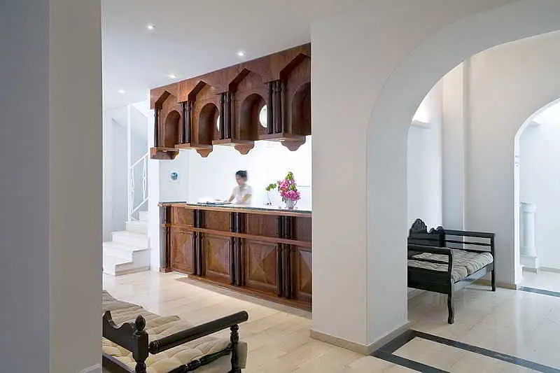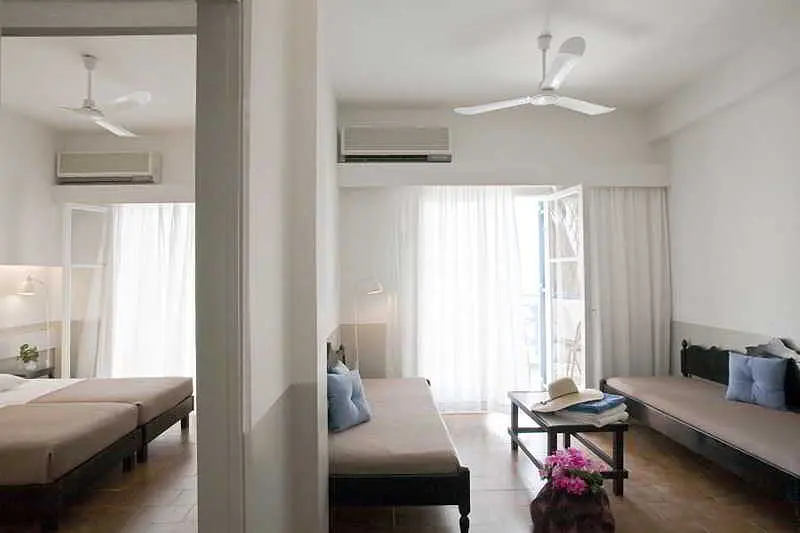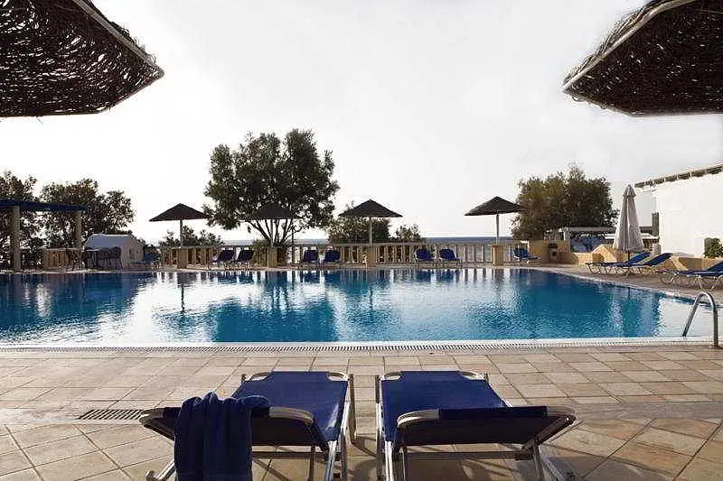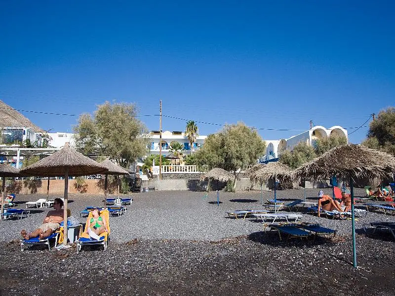 This wonderful hotel, built in Aegean style with 70s linear design forms, enjoys a perfect location at the quieter end of the main strip in Kamari. Within walking distance guests can reach the famous volcanic black sand beach. In the immediate vicinity guests will find a series of shops, supermarket and restaurants. Fira is approximately 9 km away. This is the perfect hotel for endless hours of leisure by the sea.