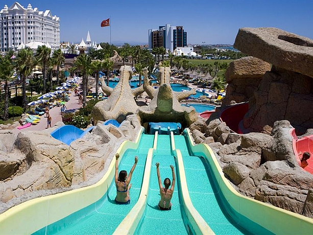 HOTEL: Los clientes disponen de areas ajardinadas, piscinas, bares, una piscina para niños, ascensor, un restaurante, una recepción, un gimnasio, una sauna, un jacuzzi, un spa, pista para jugar al tenis, parque para los más pequeños, un supermercado y servicio de lavandería. SITUACIÓN: Este hotel, está a 250 metros de la playa. Situado a unos 10 km del centro de Side. HABITACIÓN: Las habitaciones tienen sistema de aire acondicionado, calefacción, televisión vía satélite, minibar, teléfono de línea directa, caja de seguridad con cargo extra y balcón o terraza.