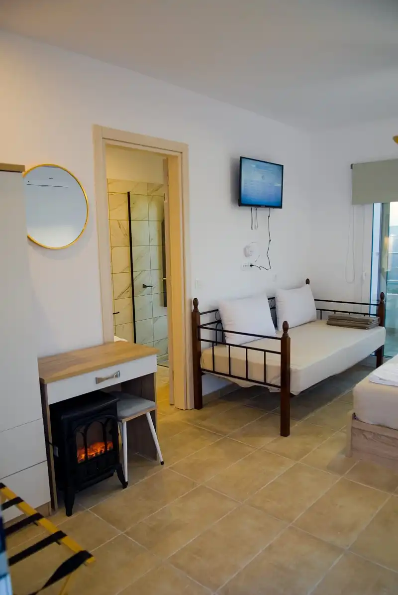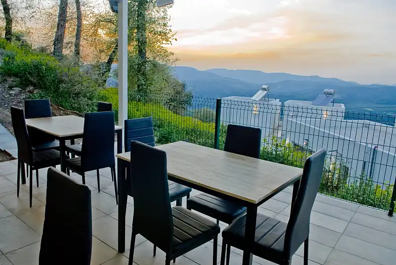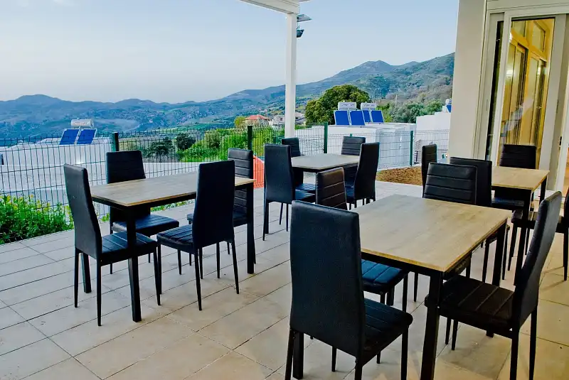 The all-year hotel's restaurant, Mourelato Italian Restaurant, offers Breakfast and Italian cuisine of excellent quality all-day. With panoramic views over the plain of Paleochora, relax by the fireplace on cold days and nights.