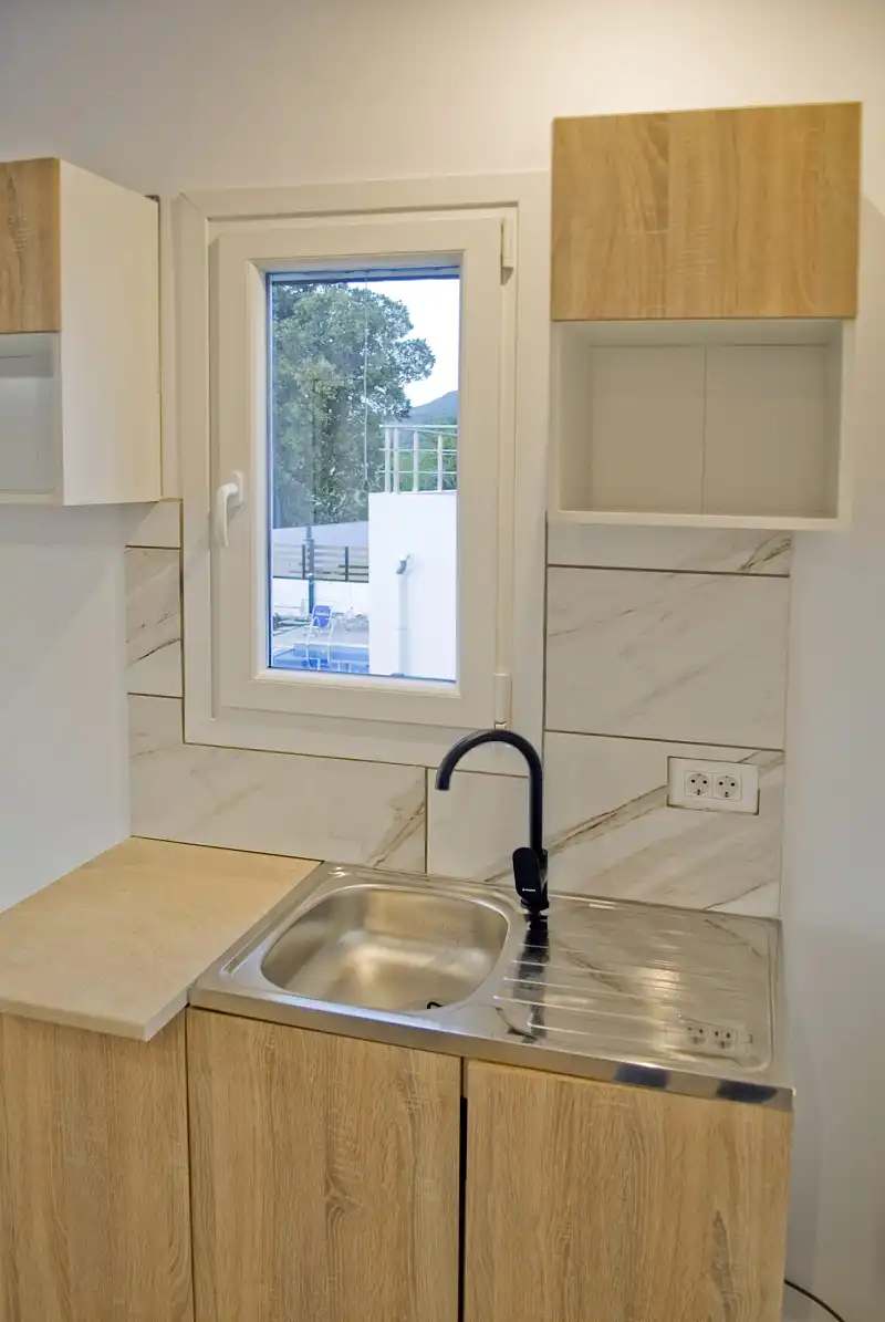 The design of the hotel is based on an alternative creation with the main goal of living close to nature. Kandania Paradise is oriented in such a way to ensure as much free areas of green. This also allows significant distances among buildings, making the unstructured space outweigh the structured one, all for our guests' privacy.
