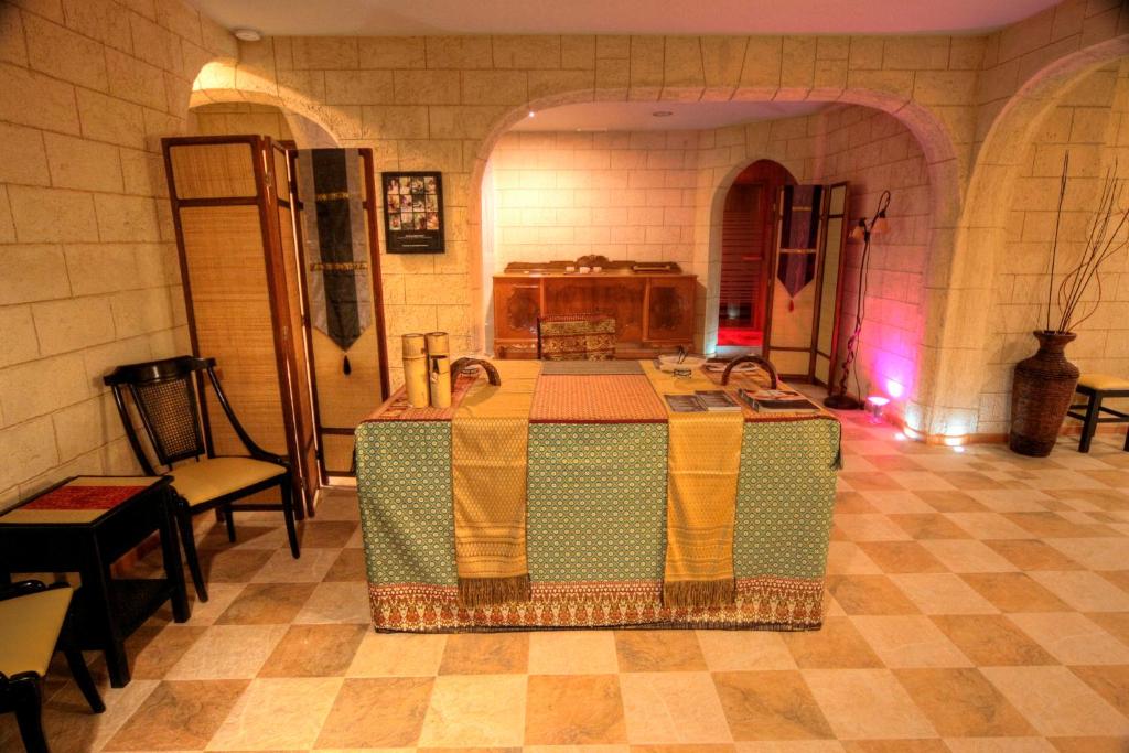 Experiență culinară: Restaurantul potrivit pentru familii servește preparate din bucătăria grecească, mediteraneană și europeană, cu brunch, pranz, cină, high tea și cocktailuri. Micul dejun include preparate calde, produse de patiserie proaspete, branză, fructe și suc.