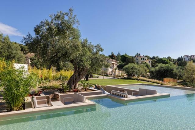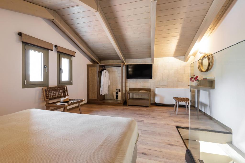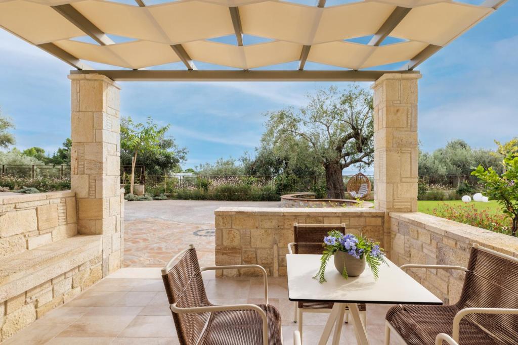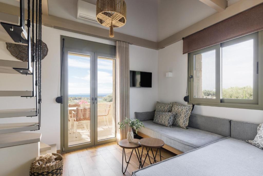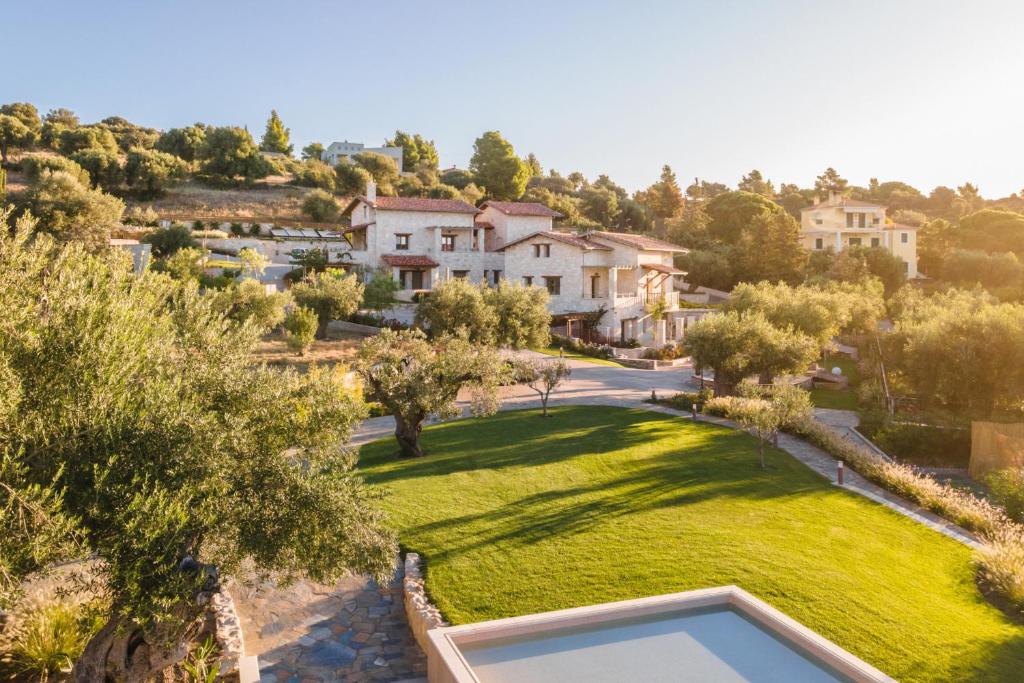 Oaspeții se pot bucura de piscina cu vedere și grădină de la Kastri Elia Suites.