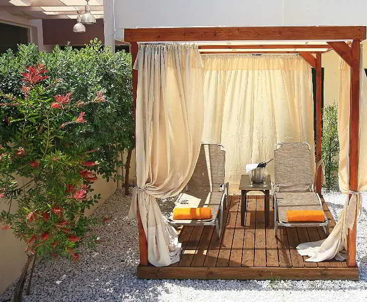 An adult-only resort offering a wide variety of accommodations ranging from hotel rooms to spacious suites and bungalows, all dotted around the pretty gardens in this well landscaped establishment that is only 220 metres from the nearest beach. Nikos Kazantzakis Airport is a 20 minute drive from the complex and a shuttle service is available for a reasonable surcharge. The hotel also offers sauna and hot tub, and boasts a wonderful swimming pool that glitters in the Cretan sunshine, where guests can order a cool drink from the poolside snack bar, which also serves light meals. The on-site restaurant will prepare special diet or vegetarian meals on request. All the rooms have their own private bathrooms, some are air-conditioned and many have balconies. The friendly English- and German-speaking staff will be only too pleased to inform about packed lunches and car hire.