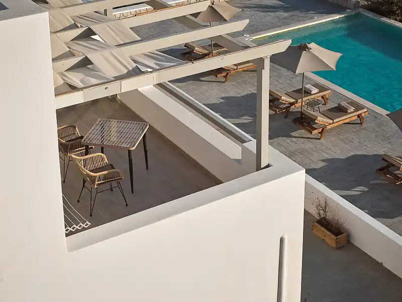 All Rooms have access to the complex’s swimming pool and an unobstructed view of Port of Adamadas.