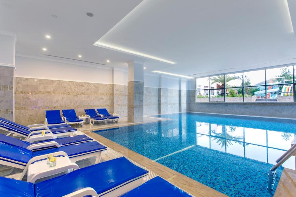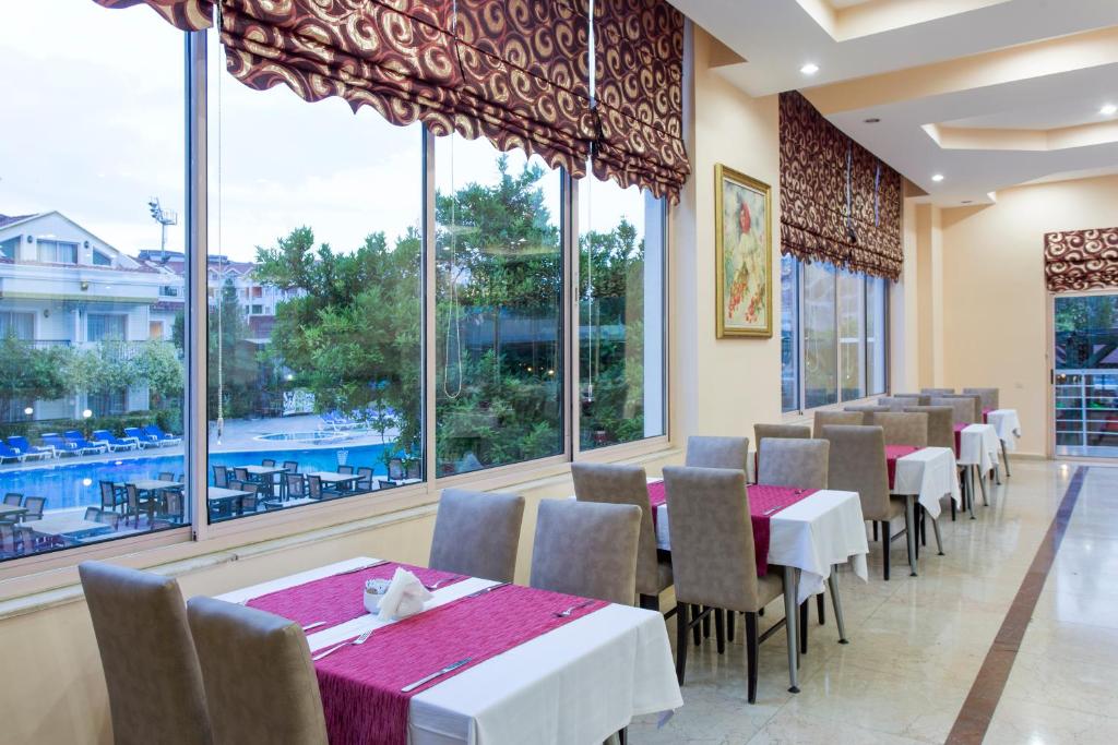 Restaurantul principal servește preparate din bucătăria turcească și internațională in sistem bufet, iar barul de la piscină oferă răcoritoare și cocktailuri pe tot parcursul zilei. Pentru momentele active, hotelul pune la dispoziție teren de tenis și sală de fitness.