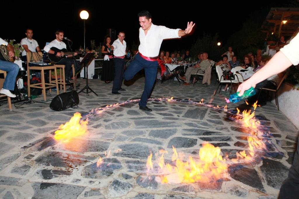 In hotel veți găsi mobilier antic și obiecte de artă plastică. Micul dejun și cina grecești, inspirate de gusturile locale, pot fi savurate in restaurant sau pe terasele adiacente. Barul de zi este langă piscină și servește o gamă largă de gustări, băuturi și cocktailuri.