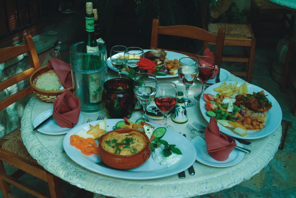 Kiniras Restaurant serves a wide range of authentic and traditional dishes consisting of fish, meat and other delicacies. An awarded, traditional Cypriot breakfast and various refreshments from the bar can be enjoyed in the stone-paved courtyard featuring numerous sculptures.