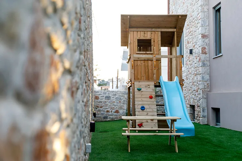 Villa Kleanthi is a new, and modern luxury villa for 8-10 pax. The villa consists of 4 bedrooms and 3 bathrooms. The beach is nearby, and only a few minutes walking. The villa provides a swimming pool, a mini playground for children and a big garden full of flowers and trees. Villa Kleanthi is a car-free holiday villa, because of the short distances from the beach, shops, markets, bus stations, bars, and restaurants.