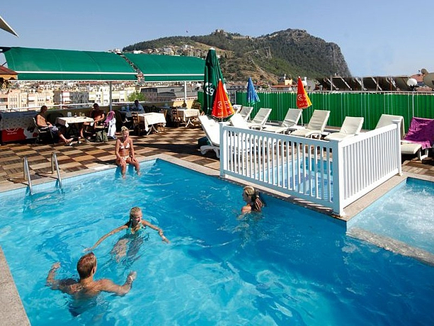 HOTEL: Este hotel es de ambiente muy familiar, cuenta con 37 habitaciones, un buen servicio y actividades. SITUACIÓN: Está situado en la costa sur de Turquía. Este hotel, está en Alanya, está situado a 300 metros del corazón de la ciudad. A 100 metros aproximadamente los huéspedes del establecimiento pueden disfrutar de una playa. HABITACIÓN: Las habitaciones disponen de aire acondicionado con cargo extra, cuarto de baño, televisión y teléfono de línea directa.