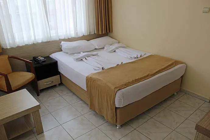 HOTEL: Los clientes tienen a su disposición un restaurante, un bar y cibercafé. Cuenta con 20 habitaciones, aire acondicionado, un vestíbulo con recepción, servicio de salida, caja de seguridad, servicio de cambio de moneda, ascensor, un salón donde podrá ver la televisión y servicio de habitaciones. Abonando un cargo extra dispone de internet y servicio de lavandería. SITUACIÓN: El hotel, está en la playa Kleopatra. Está situado en la zona oeste de Alanya. A 800 metros puede encontrar el corazón de la ciudad. A 150 metros dispone de la bahía. Se sitúa a una distancia de 135 kilómetros del aeropuerto de Antalya. HABITACIÓN: Habitaciones tipo standard tienen aire acondicionado con cargo extra, calefacción individual, secador de pelo, televisión, balcón, ducha, cama doble, teléfono de línea directa y radio. INSTALACIONES: Mediante un pago adicional puede disfrutar de un programa de ocio y entretenimiento para adultos. En la playa puede encontrar tumbonas y sombrillas. COMIDAS: Se puede reservar en régimen de alojamiento y desayuno. Se ofrece a los huéspedes desayuno bufet continental y almuerzo y cena servidos a la carta o como menú. MÉTODOS DE PAGO: Se acepta American Express, Mastercard y Visa.