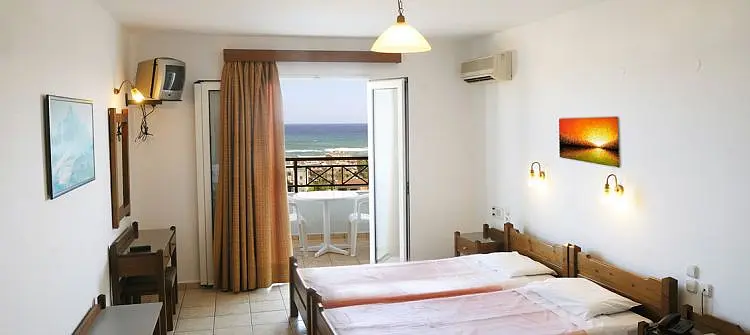 Complexul de apartamente este contruit pe o colina (in panta), la o distanta de 800 m de centrul statiunii si de plaja Stalis, oferind o superba vedere panoramica asupra Marii Egee. Hotelul este inconjurat de alei, terase, locuri umbroase, fiind situat intr-o zona linistita, la o scurta distanta de mers pe jos de zona animata a statiunii.