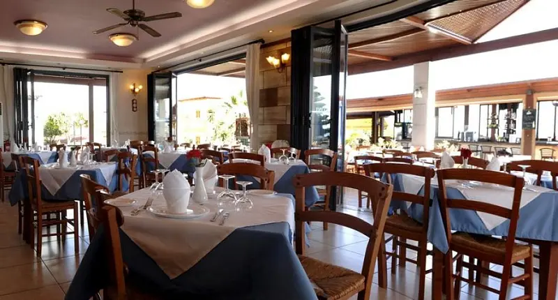 Hotelul dispune de restaurant, bar si snack bar. Restaurantul hotelului ofera preparate traditionale ale bucatariei grecesti care pot fi servite fie in incinta acestuia sau pe terasa acoperita. La piscina, barul ofera sucuri proaspete si cocktail-uri exotice, iar dimineața oaspeții se pot bucura de mic dejun American.