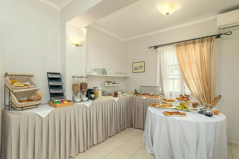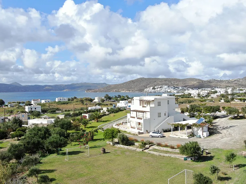 We are in a quiet area of Adamas, called Perivolia, on a hill facing the gulf. Our building is amongst fields and scattered buildings away from our land of 4000 sq.m, where you may enjoy a planted garden, own parking, and playgrounds. You may easily reach the center of Adamas, with its port, shops and restaurants, gas station and other services. Adamas is 3-minute away by car. This also implies you may comfortably reach all beaches and places of interest of Milos. We have 12 double rooms, 2 triple rooms and 1 family room of which nine face the gulf and the remaining our garden. Each room is equipped with all comforts, including own bathroom, fridge, A/C, free Wi-Fi, and a kettle. On request, we serve a rich breakfast in a proper area, outside in the garden over a terrace. Daily service and linen change every three days. Konstantinos welcome you to Milos for a relaxing vacation!