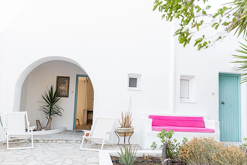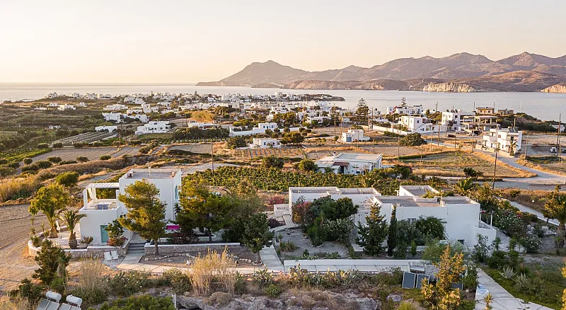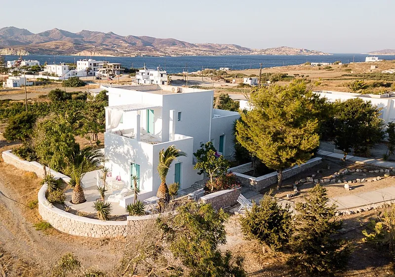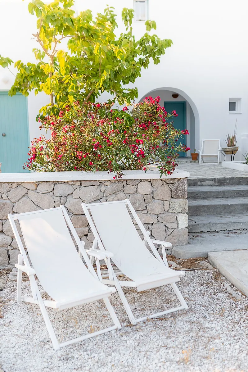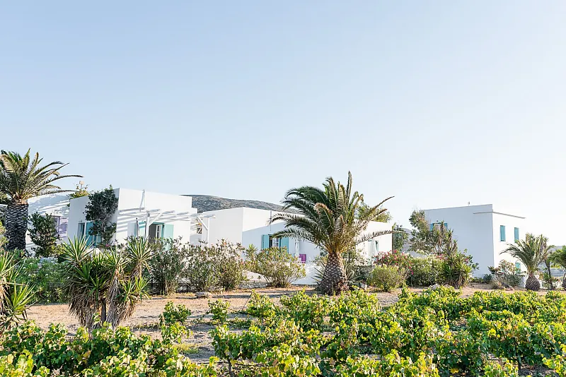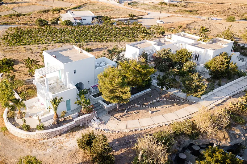 Each unit includes private terrace with panoramic sea view with a uniquely design with special taste and fantasy , combining harmoniously the cycladic architecture with mordern comfort. Be ready to be enchanted by the Agean Sea, the flowers , the vineyards , large verandas and a glass of Kostantakis Wine. Kostantakis Winery is in a calm and peaceful environmet just over the Winery is only 8 minutes walking distance away from the sandy beaches and the center of the village .