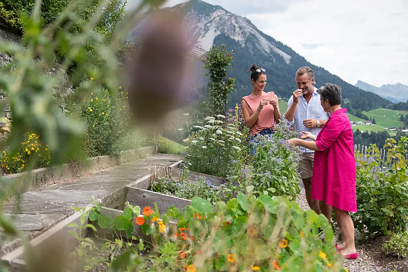 Your family-run 4-star superior wellness hotel in the middle of the beautiful nature of the Großes Walsertal Biosphere Park at 1,145m. Immerse yourself in a feeling of security and harmony in our adults-only wellness area on over 1,600m². Enjoy high-quality cuisine in a dignified, quiet atmosphere. The pristine and diverse nature makes you want to exercise in the fresh air, on guided hikes and e-bike tours with Christine, Rainer and Jonas Schäfer.
