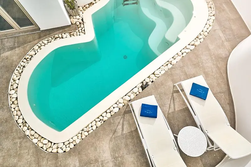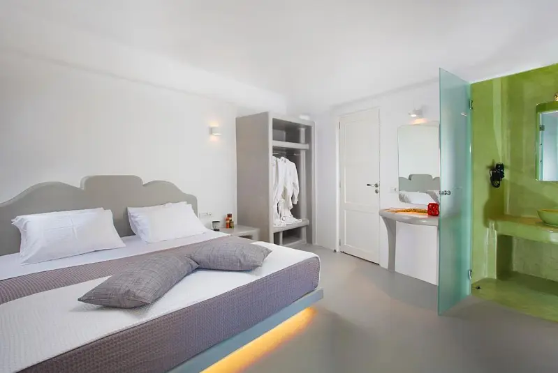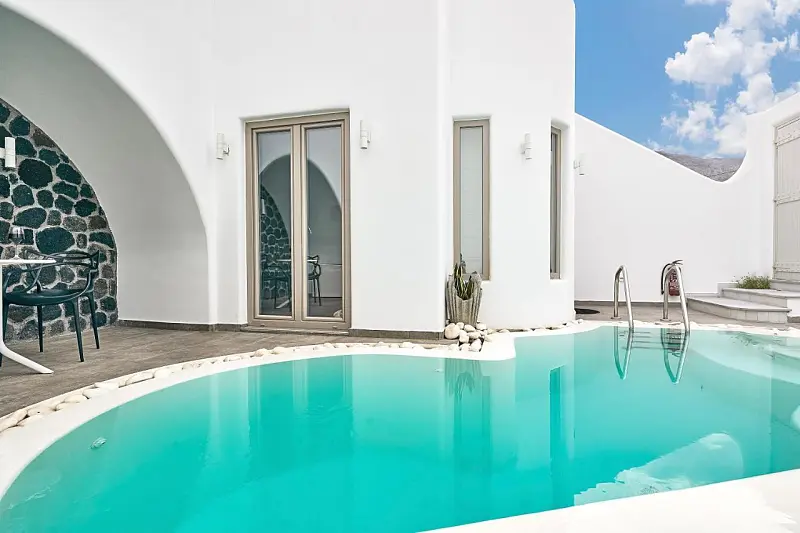 Located on the east side of Kamari village. Only 150 m away from the famous black sand beach and the lively pedestrian street of Kamari, full of restaurants, café/bars and shops. All the eleven brand new suites and apartments are decorated in a modern and minimal way always respecting the traditional Cycladic architecture. Accommodations are all spacious, offering sea, pool and land views from their private verandas or balconies. Each room comes with a flat-screen TV with satellite channels. You will find a coffee machine in the room. Extras include bathrobes and slippers. La Bellezza Eco Boutique Hotel features free WiFi throughout the propertyLa Bellezza Eco also features a Pool bar for coffees and refreshments, snacks and drinks. We also feature a sharing swimming pool with sun beds at the pool bar area. Breakfast is room serviced for the comfort of our guests.There is a shared lounge at the property. Bike hire and car hire are available at this hotel and the area is popular for horse riding and diving. Kamari Beach is 400 m from La Bellezza Eco Boutique Hotel. Santorini (Thira) Airport is 3 km away.