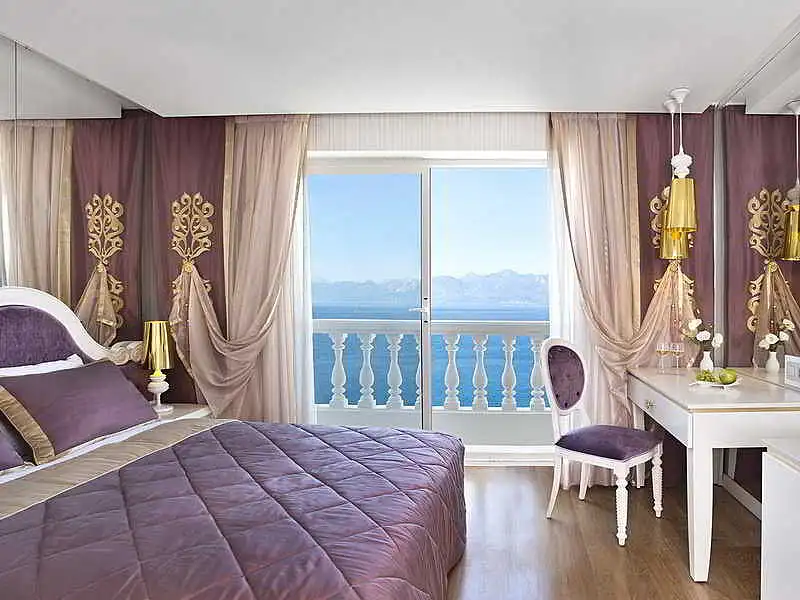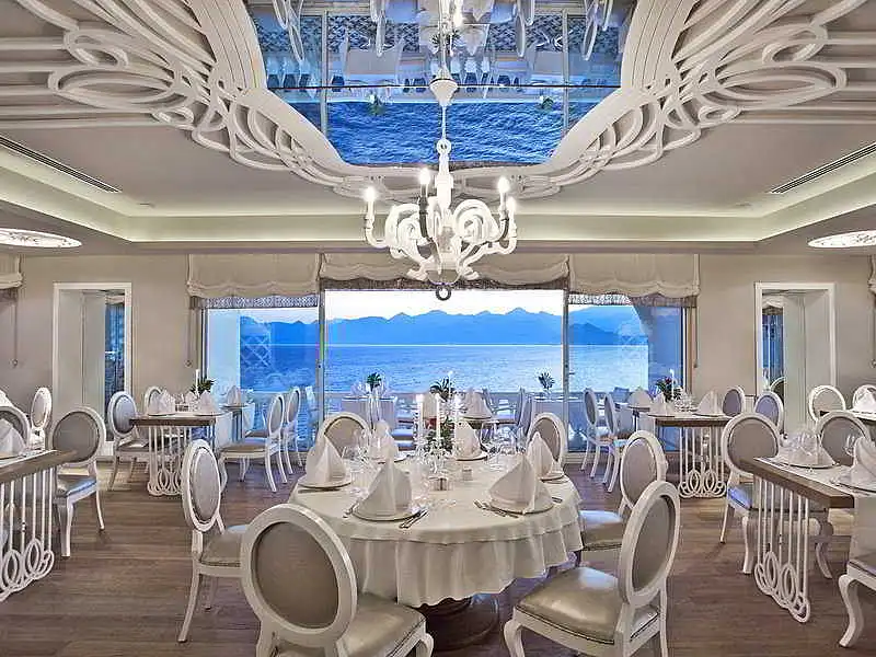 Positioned on top of the Falez cliffs in the Lara region of Antalya, this opulent French style boutique hotel enjoys marvellous views over the Mediterranean Sea and the Taurus Mountains. Shopping centres, cafés and bistros are within walking distance, the city centre can be reached within 20 minutes by car. Antalya Airport is 14 km away. The hotel features 24-hour reception, concierge service, currency exchange, free WIFI throughout, restaurant, bar, car hire, laundry service and luggage storage.