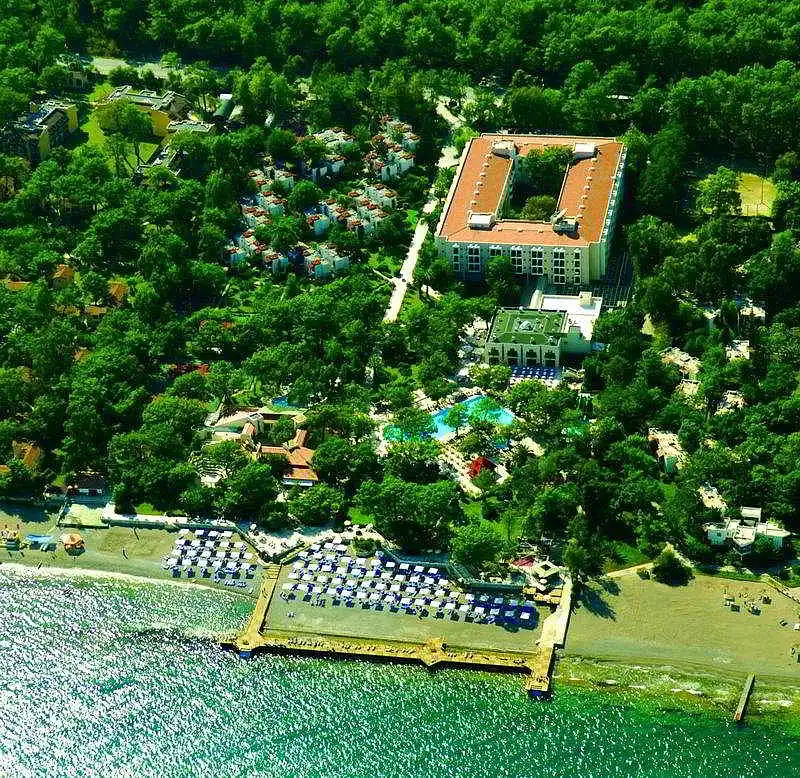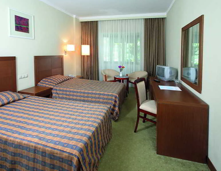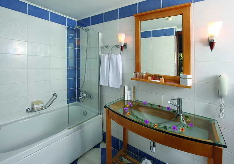The air-conditioned conference and leisure hotel set amidst exceptionally landscaped orange gardens and pine trees, offers the highest level of elegant service with a reputation of unprecedented excellence in hospitality. Nothing compares to experiencing first hand the luxury and personalised service of this hotel. The beach hotel offers 397 rooms in total which includes a main building and bungalows in the grounds and welcomes guests in a lobby with 24-hour reception and check-out services, currency exchange facilities, a cloakroom and lift access. Further facilities include a newspaper stand, hairdressing salon, auditorium, games room, TV lounge, childrens playground and a kids club. A bar, restaurant and disco provide drinks, dining and entertainment. Guests may also make use of the conference facilities, WLAN Internet access, laundry services (for a fee)and a car park.
